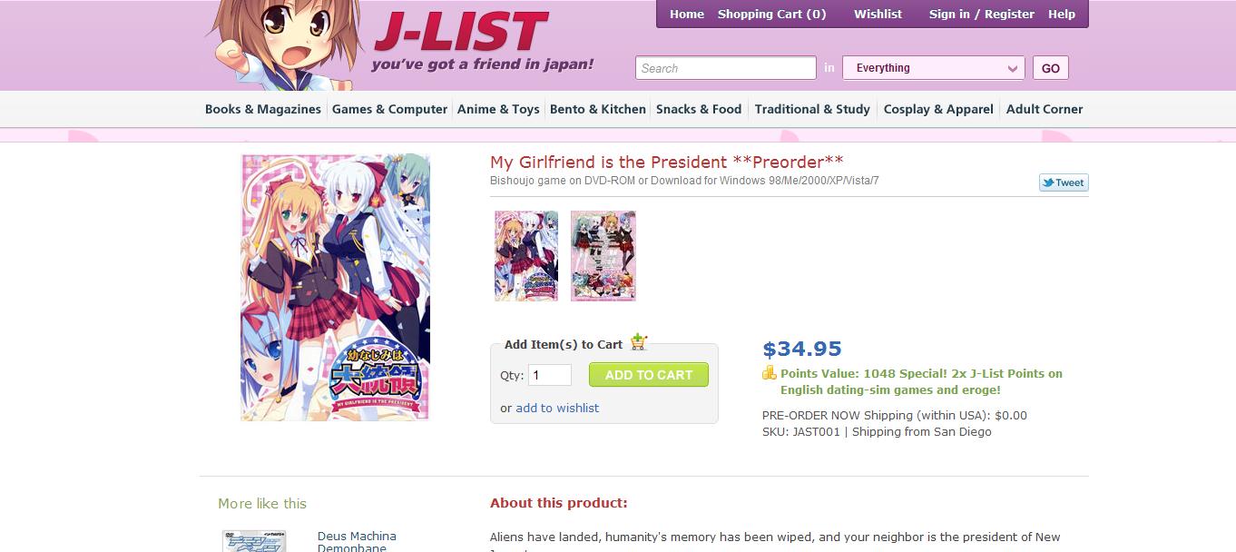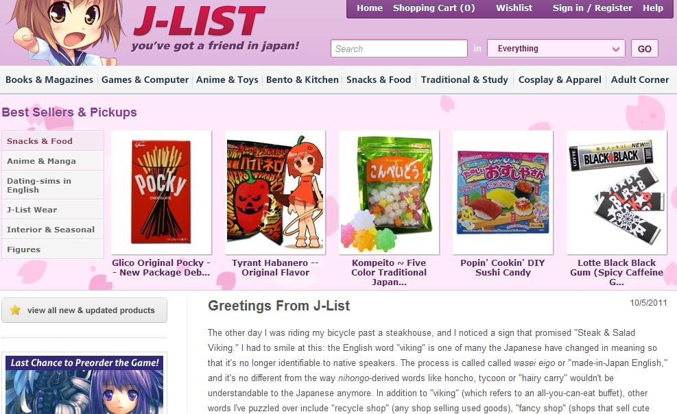 日本のオタク文化をメインにした、日本の色々な商品を販売するアメリカのサイト。